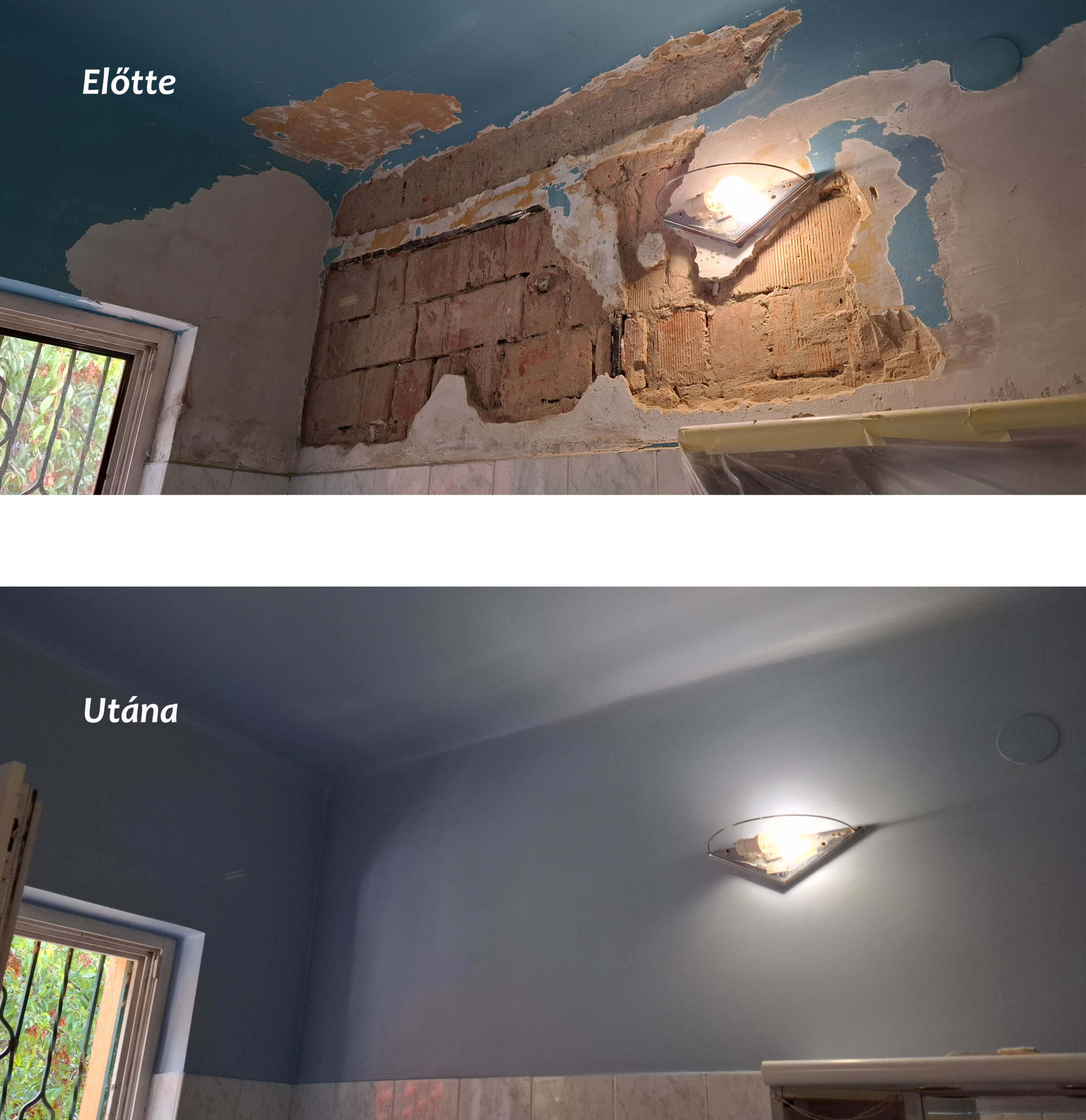 Fürdőszoba fal vakolása,, gipszelése és készre festése