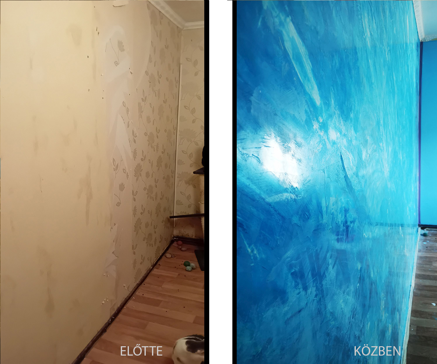 Régi tapéta eltávolítása, glettelés márvány hatású glettel