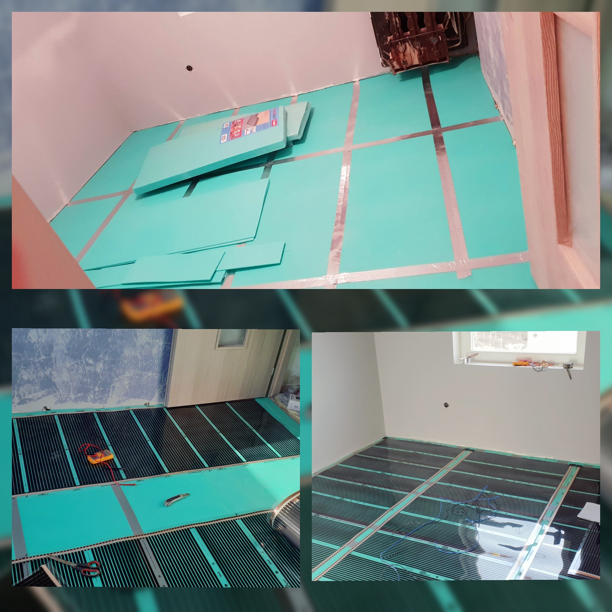 Infra fűtőfilm parketta alá telepítve, okos termosztáttal.