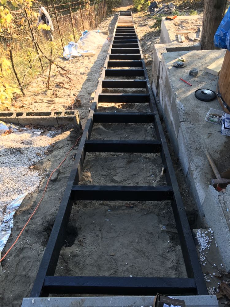 Kisoroszi. 25-méter lépcső készítése,Támfalak készítése zsaluköböl majd fa burkolást kapott. Belsö falak mennyezet szigetelése parkettázás festés...