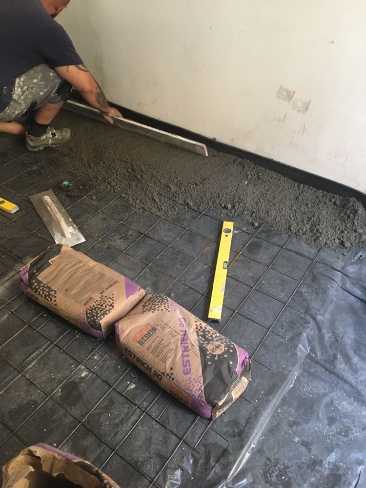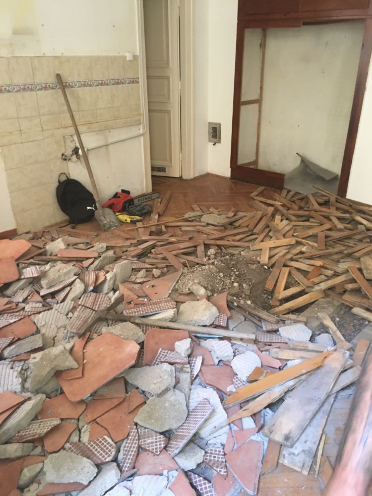 BP V-ker járólap és parketta bontás után a födém könnyitett ajzat betont kapott.