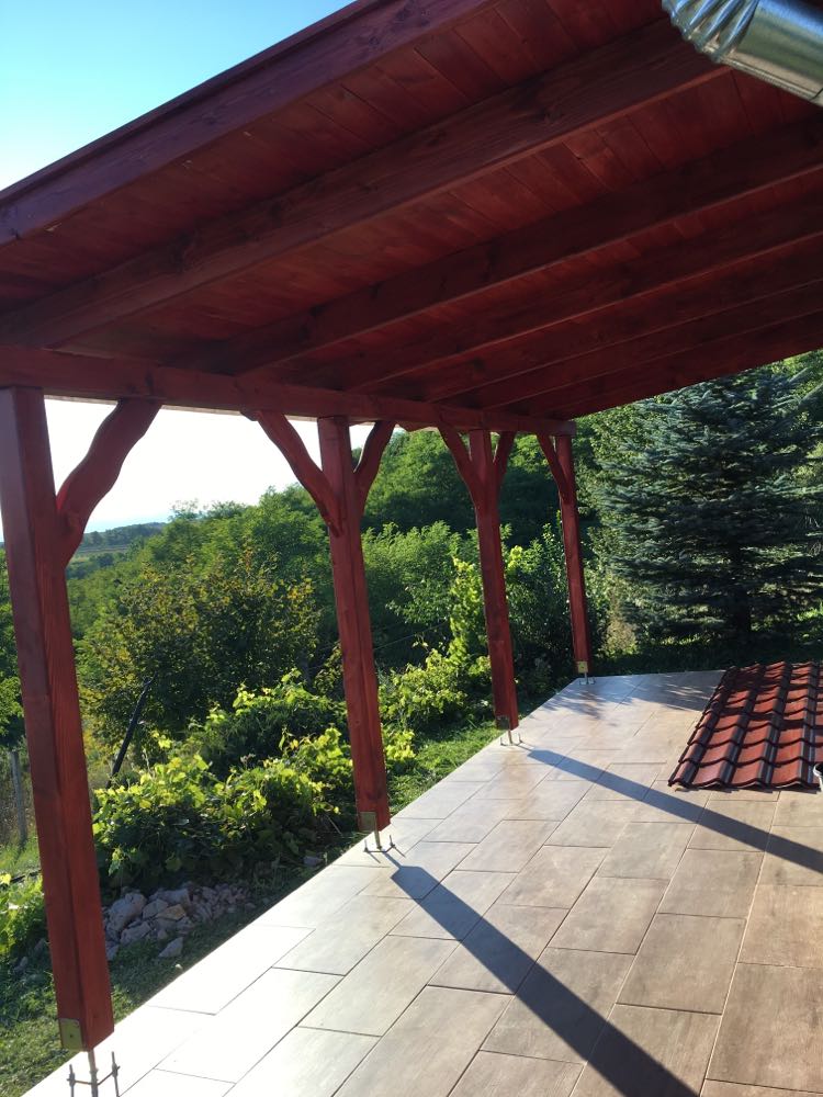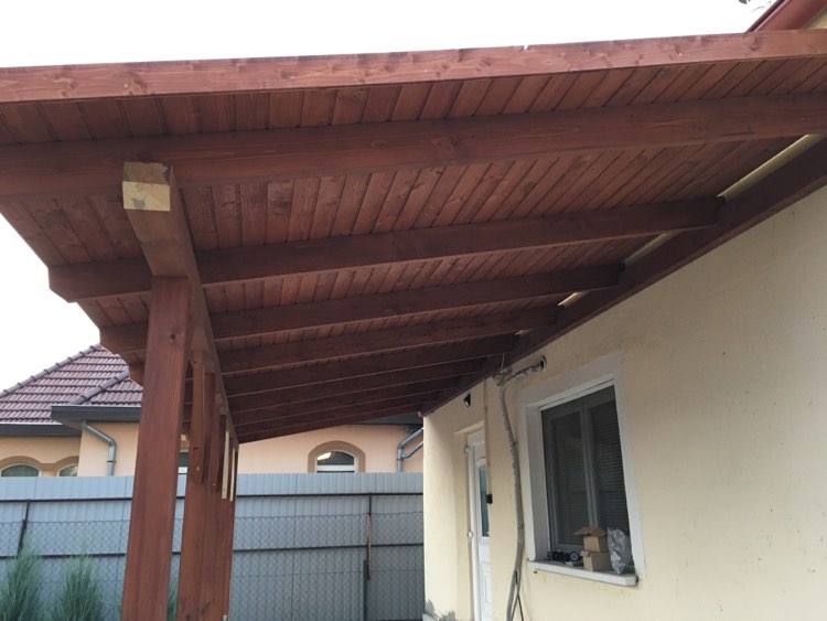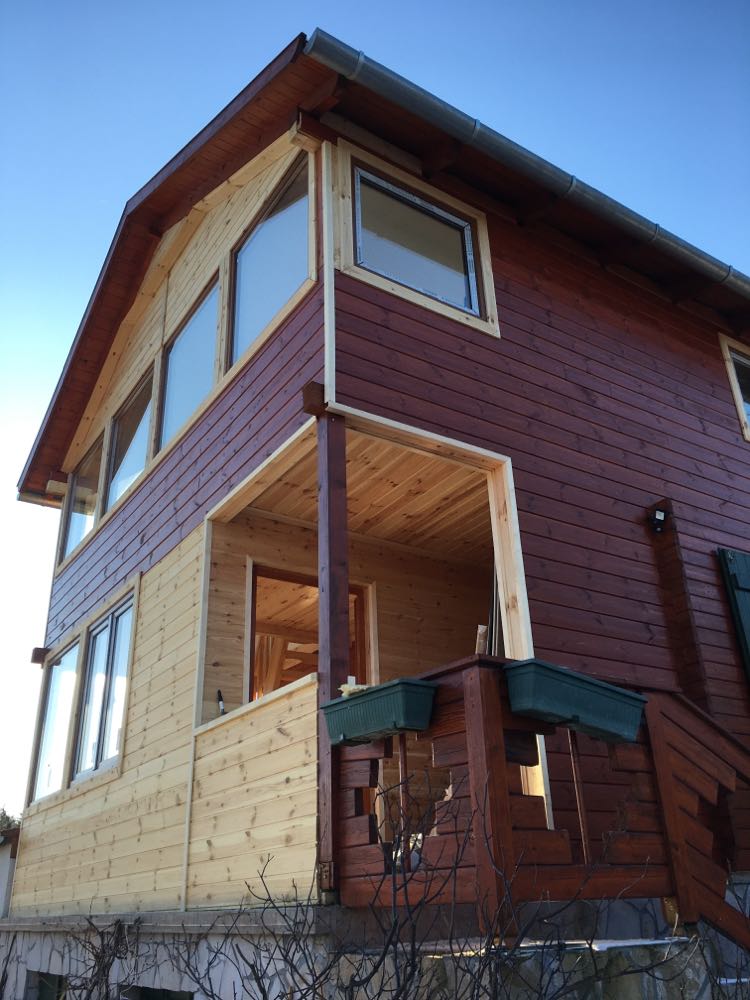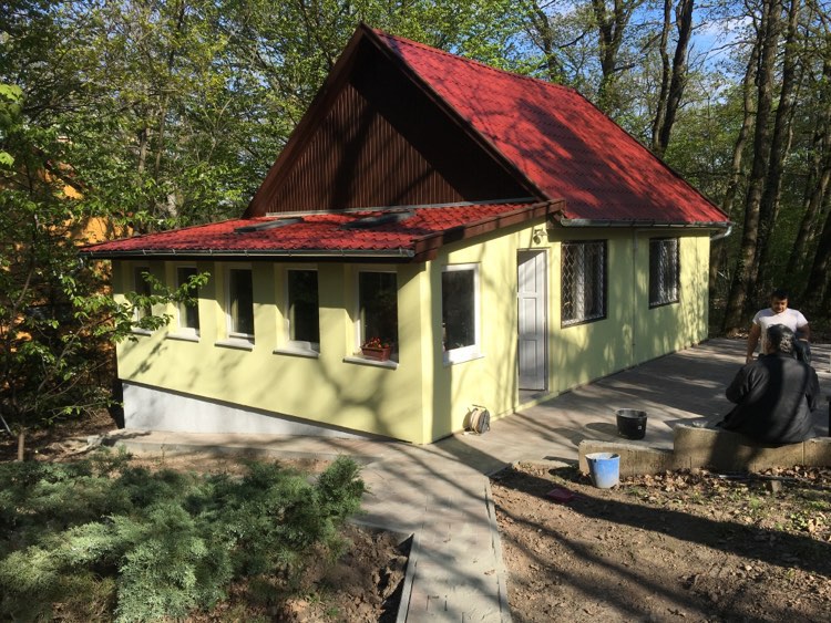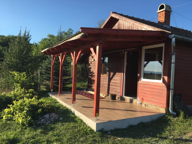 Kismaros. Állmennyezet készitése oldal falak lambériázása,külsö falak szinezése,tetö csere,térkövezés,szaletli készitése.