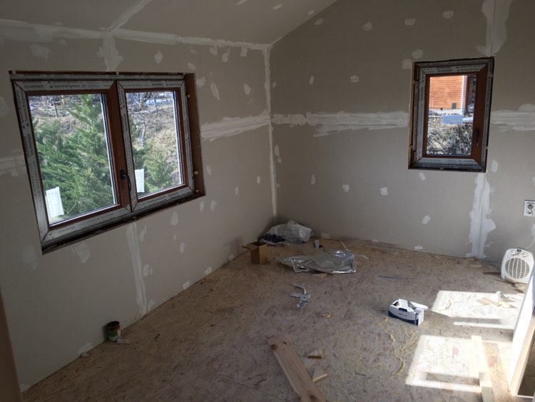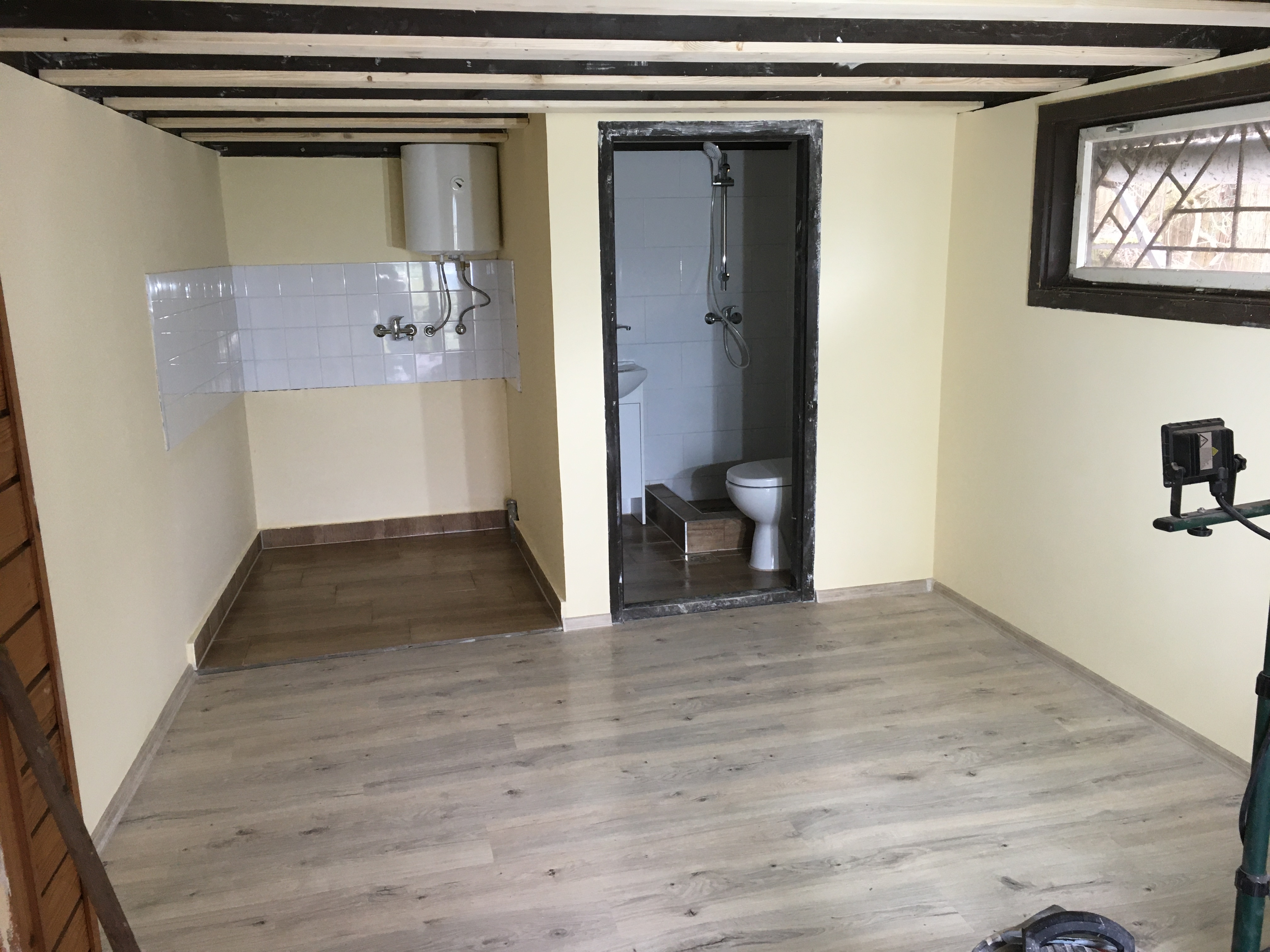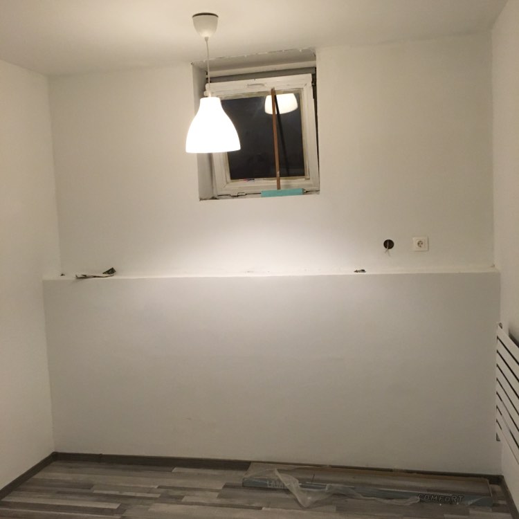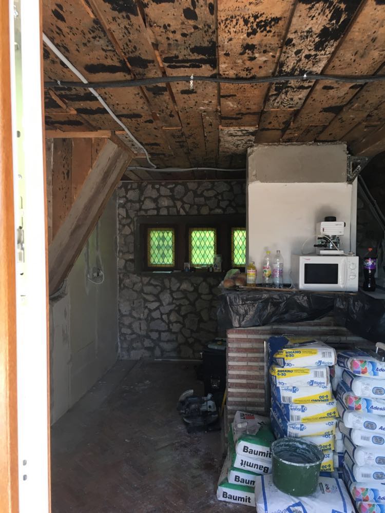Dunabogdány. Belső falak szigetelése fürdőszoba konyha felújítás parkettázás.